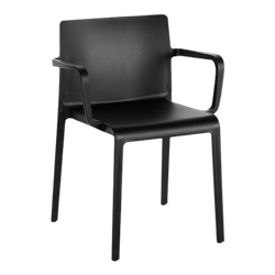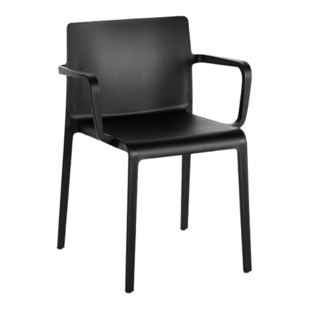 Sedia Volt 675 nera con braccioli, adatta ad un uso anche in esterno.